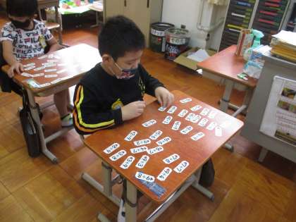 たし算の特訓をしよう!!ということで,たし算カードっを使って,いろいろなゲームをしてみました。計算も少しずつ早く言えるようになってきています。