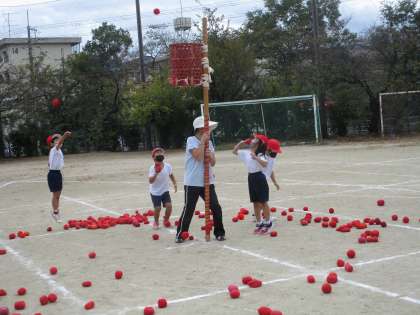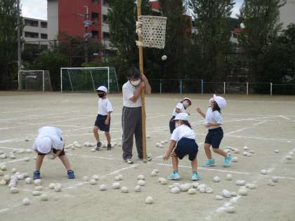運動会の練習では,玉入れに初挑戦!!楽しみながら頑張っていました。