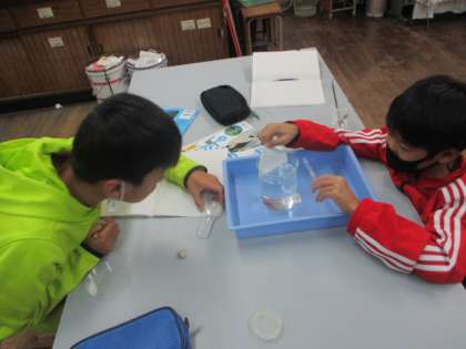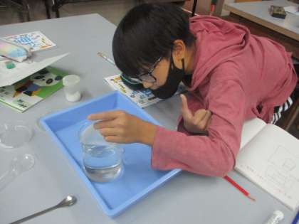 前回から「もののとけ方」の学習を始めていますが,今日は食塩のとけ方を観察しました。