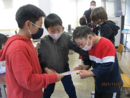 もらったカードには大好きな食べ物やキャラクターがたくさん描かれていて,教室に持ち帰ってからも大切そうに眺めていました。