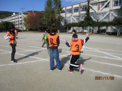 その後は,みんなで運動場でタグ取りや石木氷おにをして遊びました。