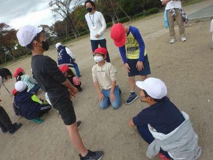 梅小路公園に着いて,石田小学校の友達と自己紹介をし合いました。好きなものや特異な教科を紹介しました。