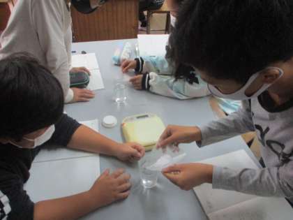 最初と最後の重さを測り,いざ水に食塩を溶かして重さを測ってみると・・・