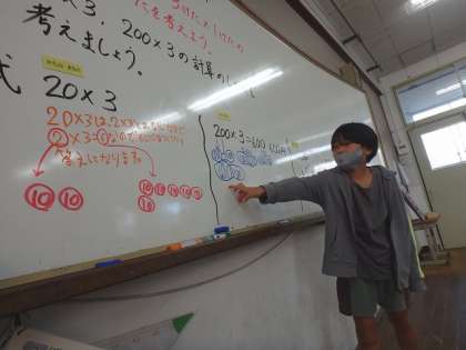 3けた×1けたや2けた×3けたの計算の仕方について学習しました。「100や10が何個分かで考えると分かりやすい!」と気付くことができた子どもたち。練習問題もすらすらと解くことができていました。