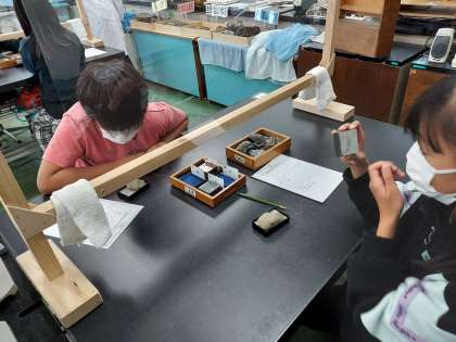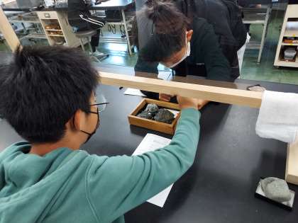 先週の水曜日に行ってきました。実験室学習では「石の中からキラキラゲット!」という学習をしました。