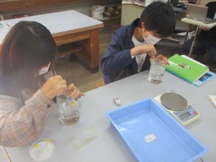 予想通り溶ける量がふえたり,予想外に増えなかったりしたものがあったようで,理科の楽しさを感じました。