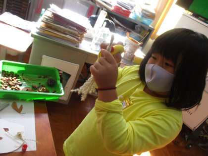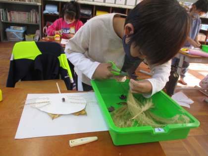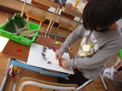 落ち葉やどんぐり,ススキなどを上手に組み合わせています。