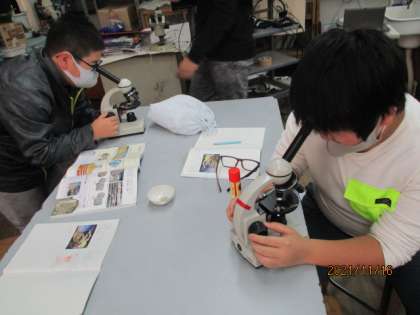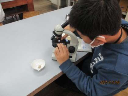 火山灰の観察をしました。顕微鏡で見るときれいに見ることができました。