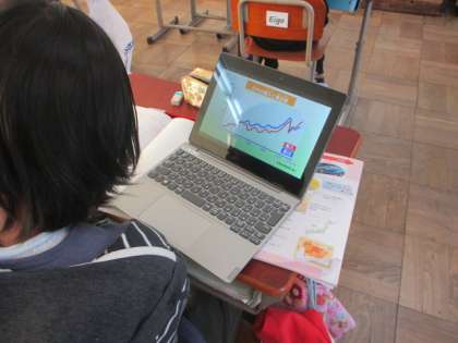 今日の社会科は視力検査と平行しておこなったため,一人一人が自分のタブレットでこちらが準備した動画を見ながらノートにまとめる学習をおこないました。