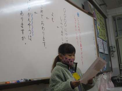 自分で調べた自動車の紹介をしました。仕事やそのためのつくりを伝えた後は,みんなに感想を聞きました。自分が調べた自動車と比べながら感想を言う子もいて,驚きました。