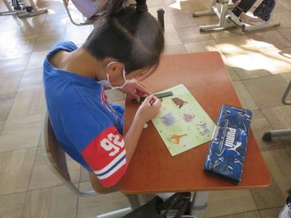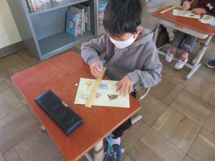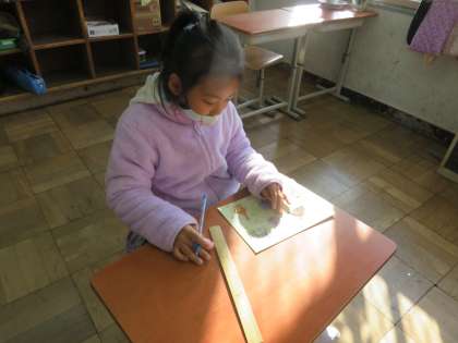 教科書の付録を使ってスタートした授業ですが,やりながら「さんかく」「しかく」と声を出していましたが,『では何故これがさんかくなの?しかくなの?』と聞くと首をかしげる様子も見れました。