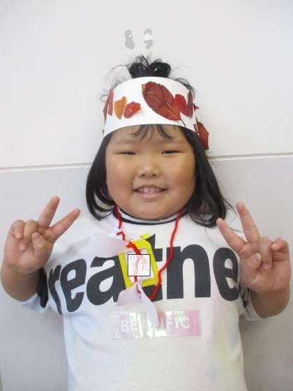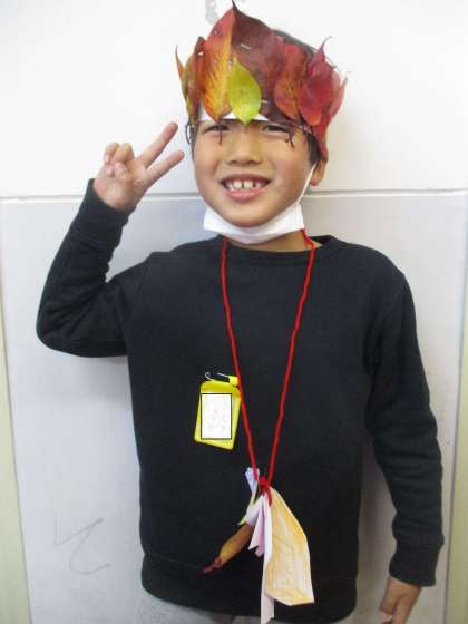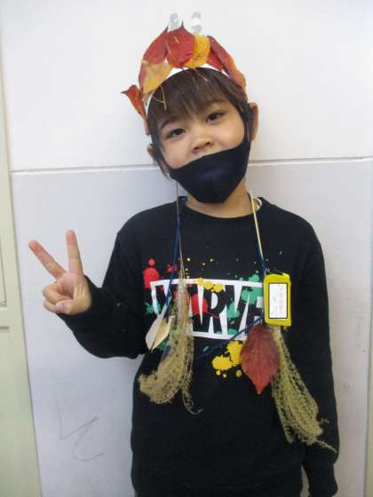 秋を使って,首飾りと冠を作りました。