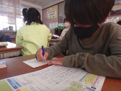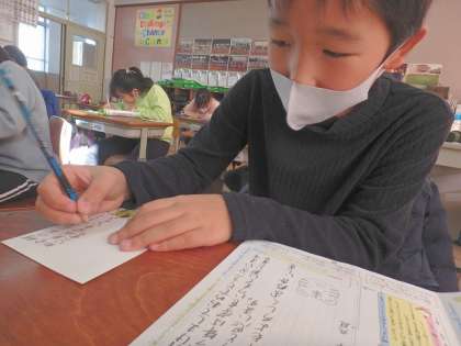次にあいさつの文を書きました。相手に心を込めて,丁寧に書いている子どもたちでした。