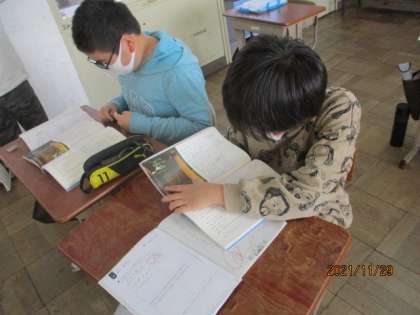 柿山伏の音読劇の練習をしました。ペアで発表をします。こだわる所はこだわって音読してほしいと思います。