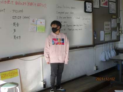 パンフレットを使って自分のまち(京都)を紹介する発表をしました。今回はみんなの前で発表しました。
