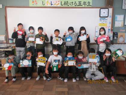 全員の作品が完成したので,みんなで写真を撮りました。