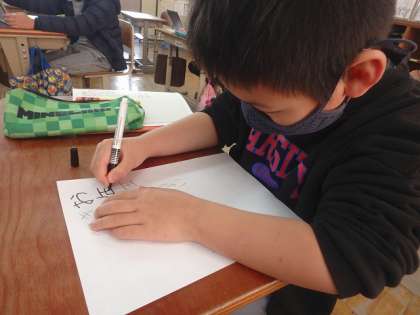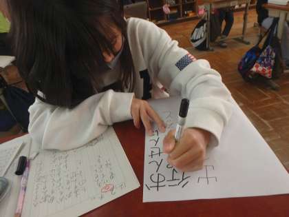 考えた俳句を画用紙に書きました。