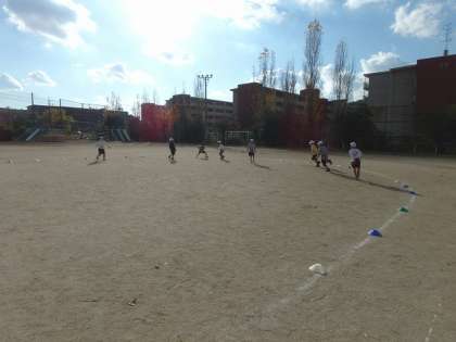 体ほぐしの時間にタグ取りをしました。5分間のペース走でも歩くことなく自分のペースで走ることができました。