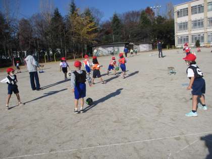 はじめて,石田小の運動場で体育をしました!!ころがしドッチボールは3回目!ルールにも慣れてきたようです。