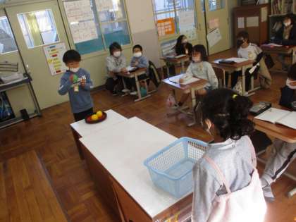 算数の学習で,2人組のチームで1人ずつボールを投げ,かごに入った数をたし算してチームの得点を出しました。その中で,2+0や0+0などの0のたし算が出てきましたが,子ども達は「0を合わせても変わらへんな!」と今日の学習をすぐに理解したようでした!