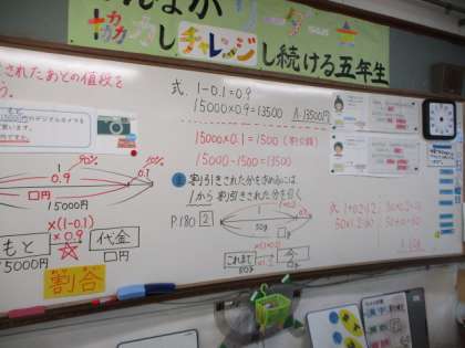 割合の学習を頑張っている5年生。