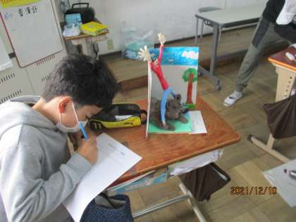 「未来のわたし」の鑑賞会をしました。友だちの作品のいいところを伝え合いました。