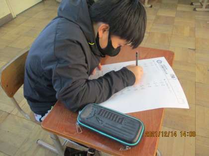 テスト中はもくもくと問題を解き進めていました。