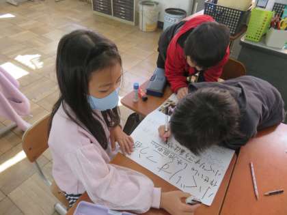 子ども達は写真を見ながら先週の事を思い出し,楽しそうに話し合っていました。
