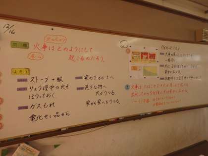 火事はどのように起こるのかについて調べました。資料に書かれていることに線を引いたり印をつけたりして,分かったことをまとめました。