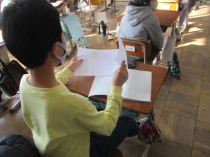 今日は,それをみんなで読みあってクラスの意見文No.1を決めました。