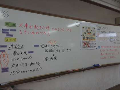 火事が起こった時,消防署の人がどのようなことをしているのかについて学習しました。一件の火事に多くの人が関わっていることに気付くことができました。