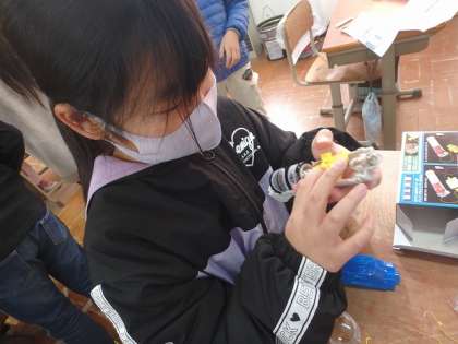 組み立てていると「何で明かりがつかへんの?」という場面がありました。そんな時にも習ったことを生かし,「どこかがうまくつながってないんちゃう?」と考えることができていました。