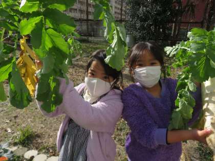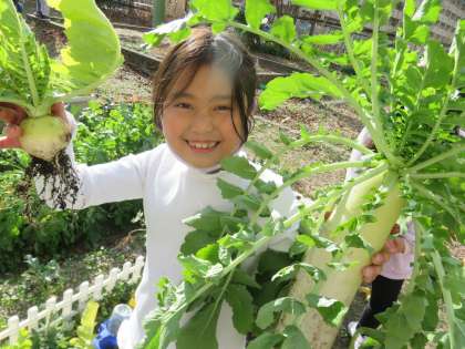 今年は2年生の畑で大根やブロッコリーを植えています。