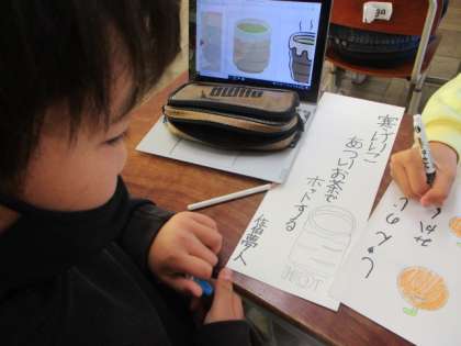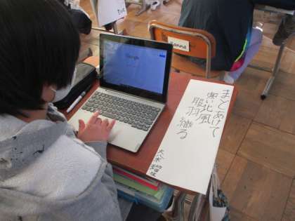 冬を表す言葉で「北風」「からっ風」などいろいろな言葉を知り,自分の好きな冬のイメージを俳句にしました。