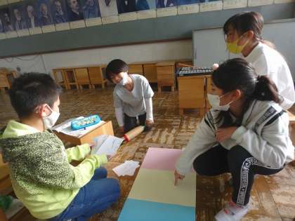 前の時間に考えた音楽のもとを組み合わせて「まほうの音楽」をつくりました。