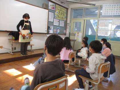 岩永先生が,読み聞かせをして下さいました。牛乳パックで作った絵本パックシアターやエプロンシアターなど,楽しい読み聞かせが盛りだくさんでした!