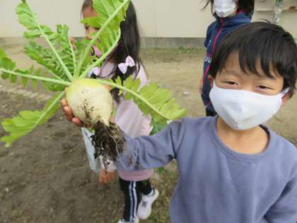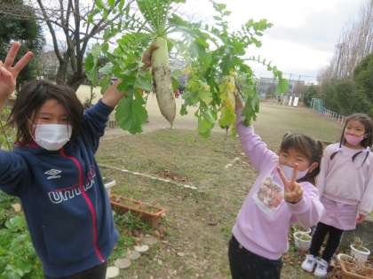 最後までしっかり大きく育った大根を引っ張って必死になって抜いていました。