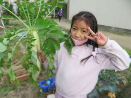 今日は二者懇談会3日目!最後のグループが大根の収穫をしていました。