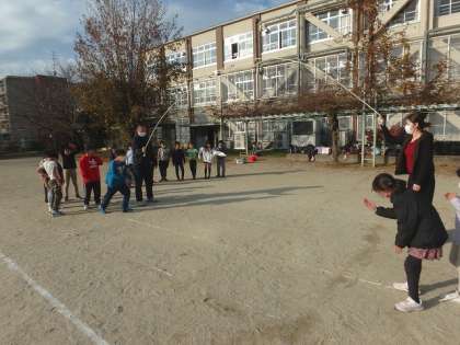 最後は大縄です。体育の時間にやったことで「全員連続で跳びたい!」という気持ちになってようです。