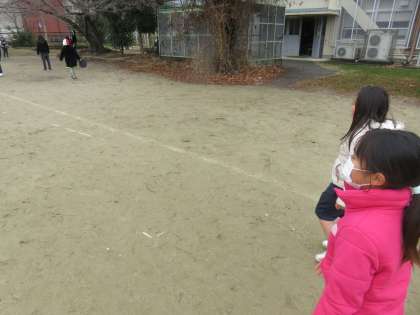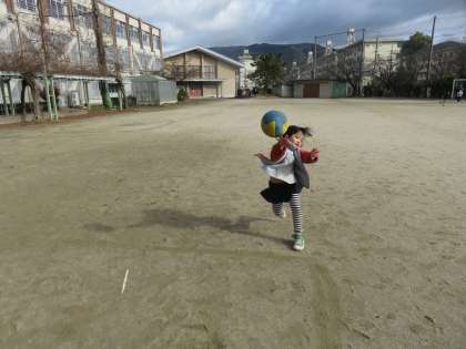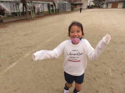 寒いなーと縮こまる担任を余所に大はしゃぎの子ども達。
