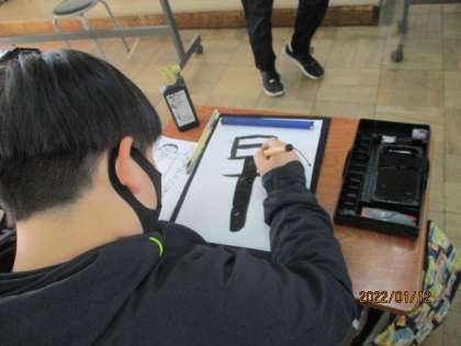 今年の目標を習字で文字を工夫して表しました。味のある作品になりました。