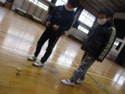 お正月遊びとして,羽子板・けん玉・こま・竹とんぼなどをして遊びました。初めて遊んだという子も多かったですが,とても楽しんでいました♪