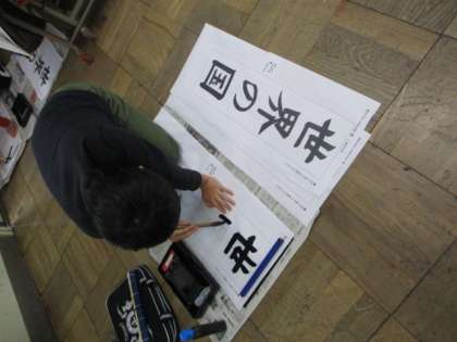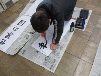 いつもとは違う画仙紙という紙に字を書いていきましたが,机の上ではなくいつもとは違う姿勢で書いていくのでそれも難しかったようです。
