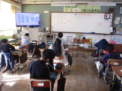 面に注目して分けてみようという声をかけてから話し合わせたので,面の形や面の数などいろいろな所に着目してグループ分けの考えが出てきました。