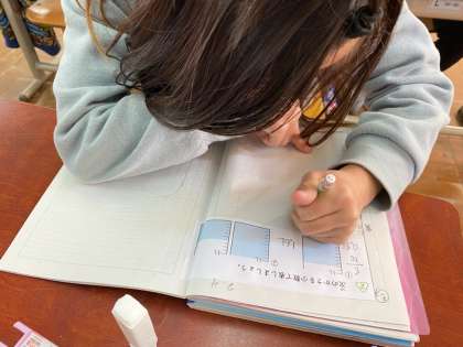 小数の学習が始まりました。「小数点」や「10分の1の位」といった新しい言葉も学習しました。