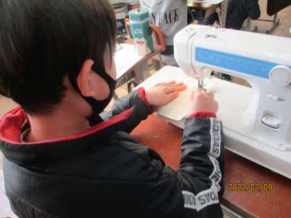 家庭科があるので、上手に縫えるようエプロンに向けて