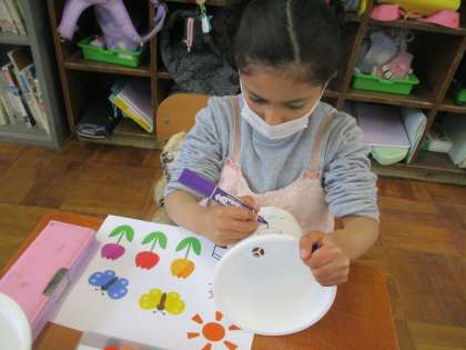 お世話になった6年生へのプレゼントの鉢植えに,絵をかきました。みんな心をこめて,真剣に描いていました。