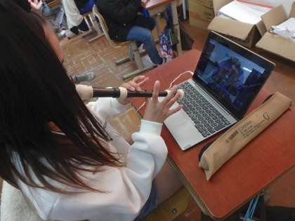 しばらくリコーダーが演奏できていませんでした。この日はタブレットを使ってこれまで習った曲のリコーダーでの指使いを確認しました。「音出して確かめたいな〜!」と話す子どもたち。確かに!気持ちはよく分かる!今できることを全力で頑張ろう!