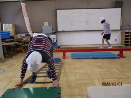 台の上を飛んだり,はしごや平均台を渡ったりしてとても楽しい時間でした。