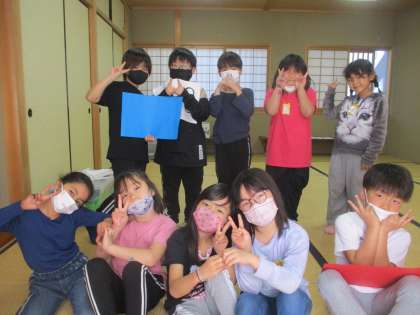 入学式にむけて,「お迎えの言葉」のビデオ撮りをしました。バッチリ撮り終え,記念にパシャリ!